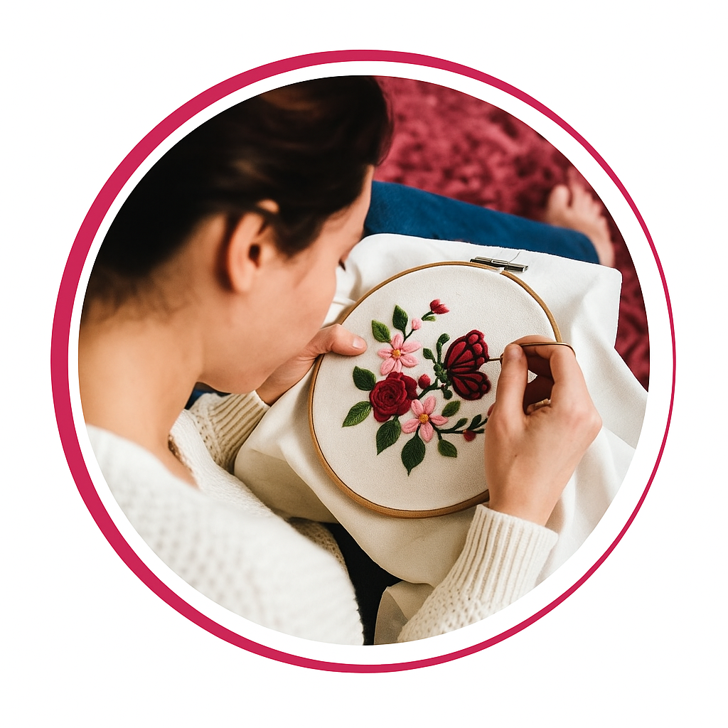 Aprenda os pontos mais usados no bordado livre, mesmo que você nunca tenha pegado na agulha — do básico ao avançado, com técnicas explicadas de forma simples e encantadora.