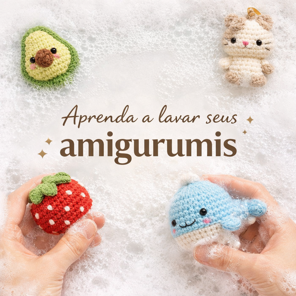 Descubra como lavar seus amigurumis da forma certa, mantendo-os sempre limpinhos, fofos e prontos para encantar ainda mais.