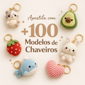 Apostila exclusiva com +100 modelos de chaveiros em crochê para você criar, vender e encantar em cada detalhe!